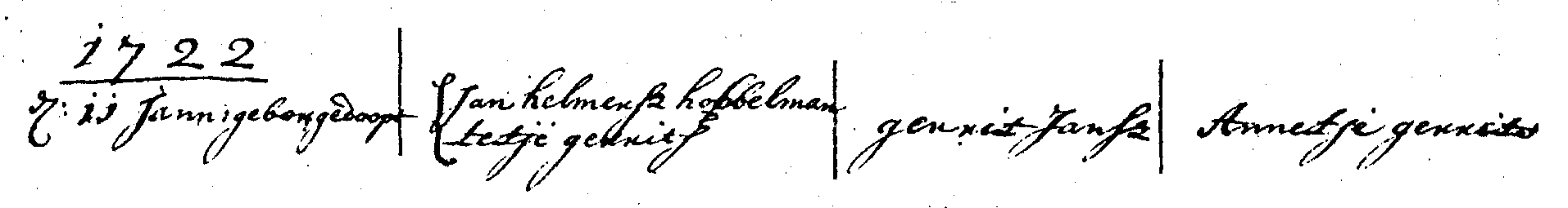 geboren Kwadijk en gedoopt 11 januari 1722, Purmerend, getuige: Annetje Gerrits